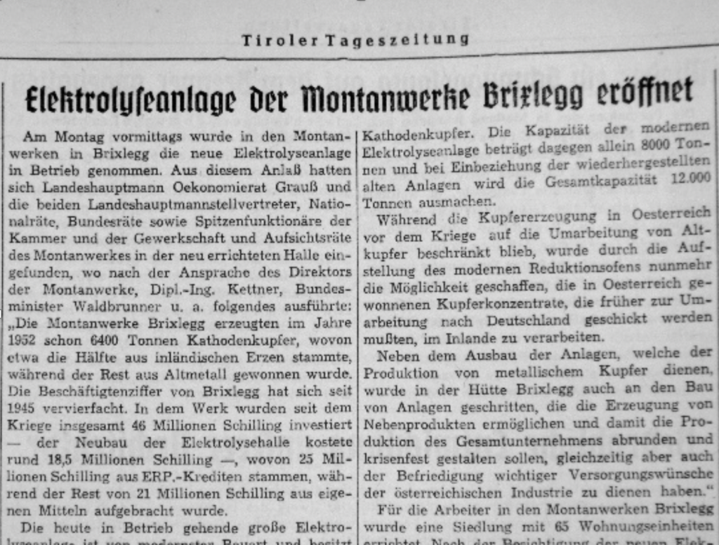 Copper and silver ore were mined in Tyrol and refined into pure metals in Brixlegg into the 20th century. As mining has declined from around 1890 onwards, ever-larger amounts of copper-containing secondary materials have been used as raw materials for producing metal in place of ore. Montanwerke Brixlegg is now purely an upcycling company. With over 350 employees based at our Brixlegg location, Montanwerke Brixlegg AG is a key industry leader in western Austria.