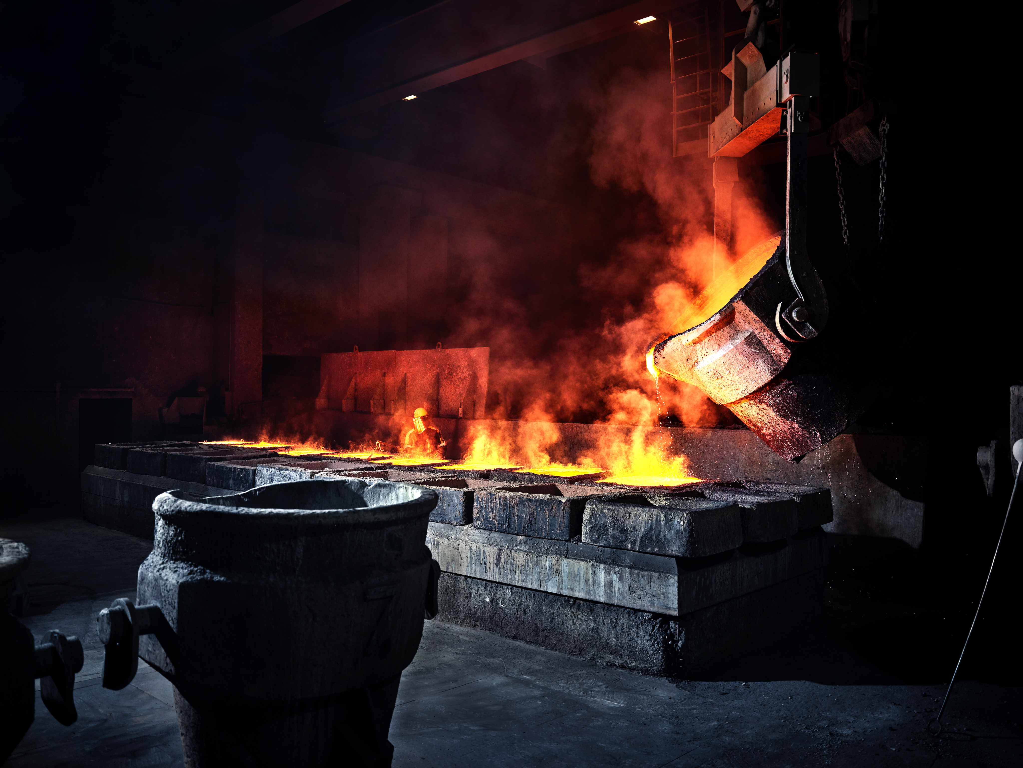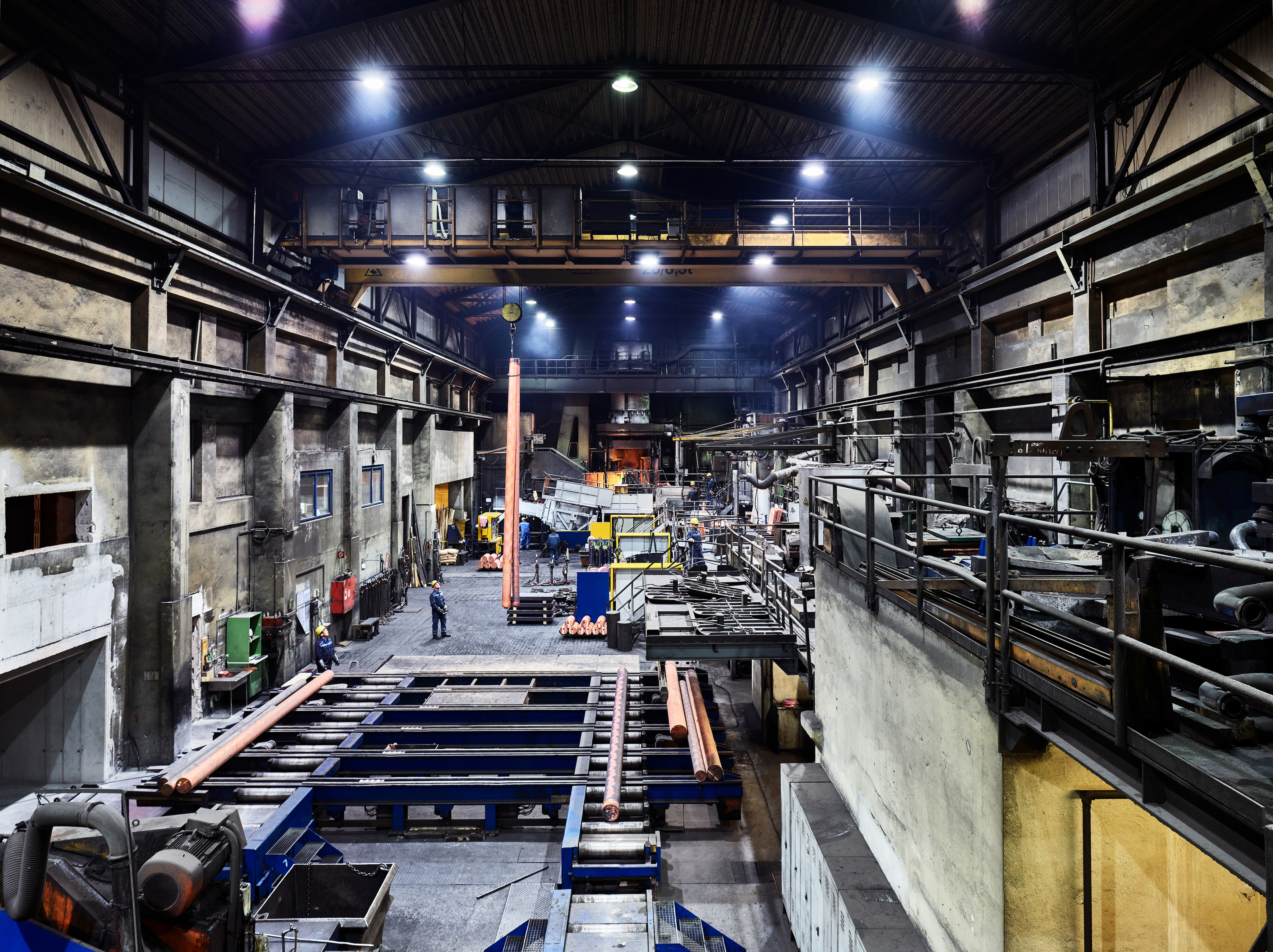 The raw materials used in the production process are copper-containing dusts, ashes, drosses, shredded materials, sludges, and runback slag with copper contents between 15 and 60%, as well as other alloy scrap, such as brass, bronze, and red bronze with copper contents between 60 and 80%. The materials we use for refining, such as scrap copper, wires, profiles (rods, metal sheets, rails, etc.), and cut-up and sorted electrical cables contain around 80-99% copper. We use high-grade runback scraps from manufacturing semi-finished products directly in the foundry without refining. Alongside these solid raw materials, we also reprocess copper chloride solutions from the electronics industry.